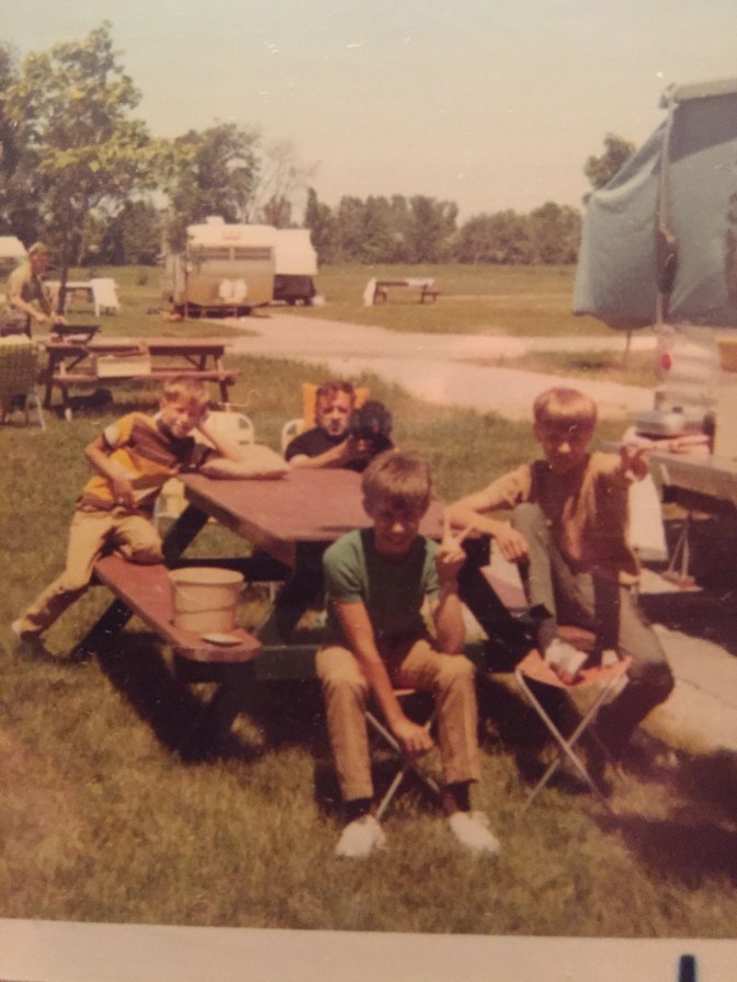And the most important feature of any campground? It had to have a lake or a pool to swim in. Randy and Paul were both strong swimmers. Me, not so much, at least not at first. When we stayed at a little campground on Lake Missaukee in Northern Michigan, my mom would pay me a nickel every time I put my head underwater. I did not get rich. I think I made less than a dollar. Eventually I caught on. The funny thing is, my mom never learned how to swim. She was out there in knee deep water helping me get over my fear, and she couldn’t get over hers.