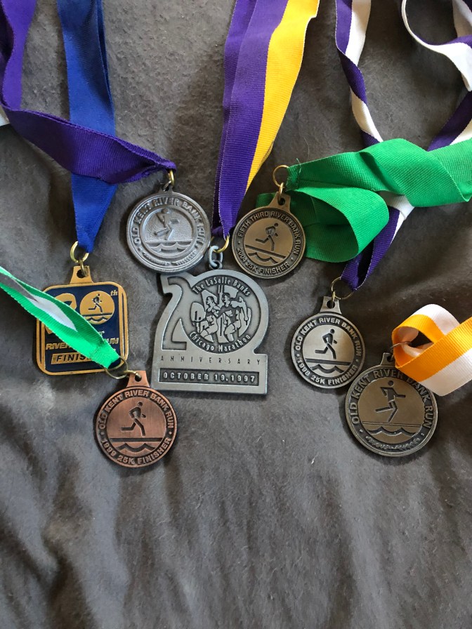 Some of my running medals. I have more in a shoe box somewhere, but I can’t find it. Oh well.