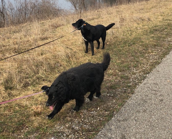 Roxie and Ranger, our doggie play dates today. A wonderful day for a walk.